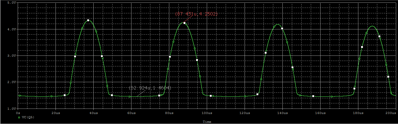 Peak to peak AC voltage at collector of transistor = 4.5409v.